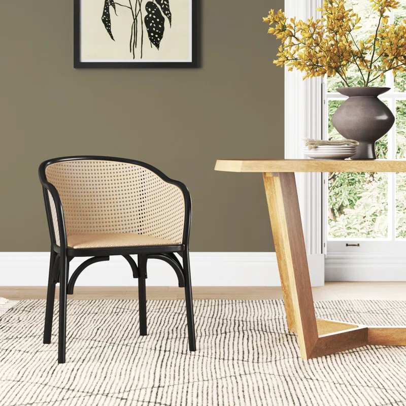 Dengan gaya modern dan sentuhan klasik dari anyaman rotan, kursi ini cocok ditempatkan di ruang makan, ruang tamu, kafe, maupun restoran. Tidak hanya fungsional sebagai tempat duduk, kursi ini juga berperan sebagai elemen dekorasi yang menambah kesan artistik pada interior. Kombinasi warna hitam dan rotan natural menjadikannya mudah dipadukan dengan berbagai gaya desain, dari minimalis, skandinavia, hingga kontemporer.