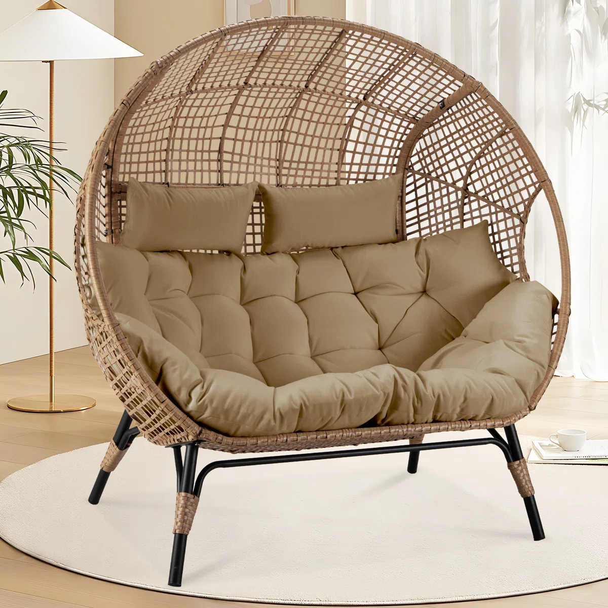 - Desain unik berbentuk egg chair double, muat 2 orang