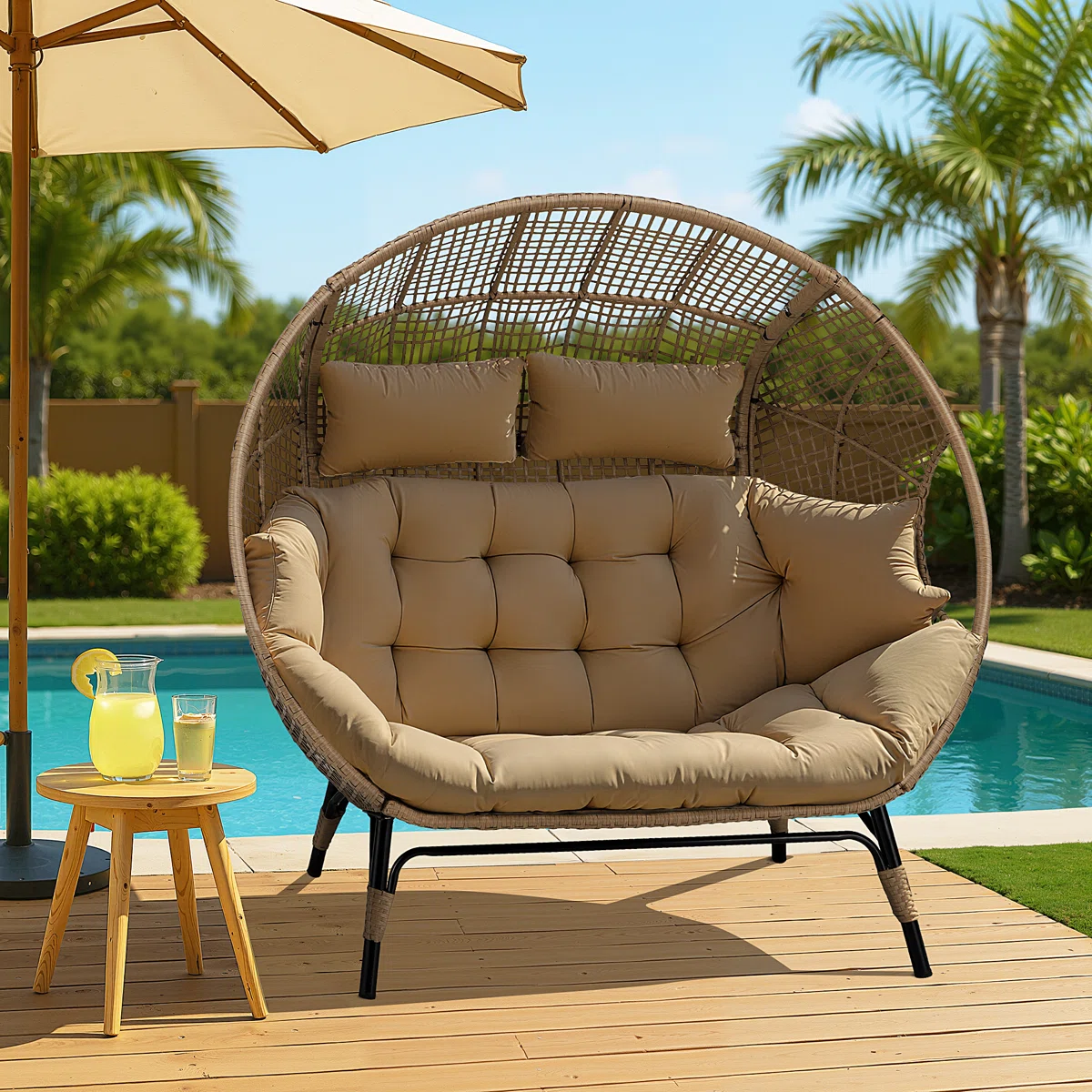 Nikmati kenyamanan maksimal dengan Kursi Rotan Double Egg Chair Outdoor, desain unik berbentuk setengah bulat yang mampu menampung dua orang sekaligus. Dengan tampilan modern dan elegan, kursi ini cocok ditempatkan di teras, balkon, taman, hingga area kolam renang.